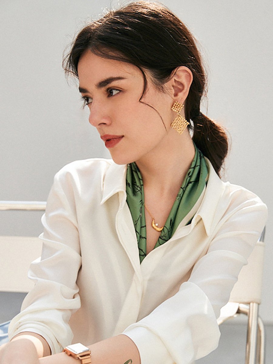 Camisa de manga larga con solapa de seda fina