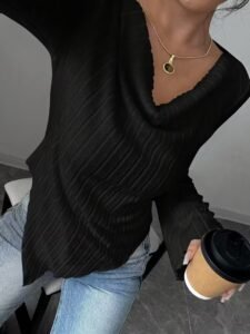 🍁 El diseño con escote en V y mangas acampanadas crea un estilo sofisticado y juvenil.