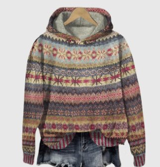 Este suéter con capucha y bloques de color, holgado y moderno, interpreta fácilmente la estética de vestir que combina moda y comodidad.