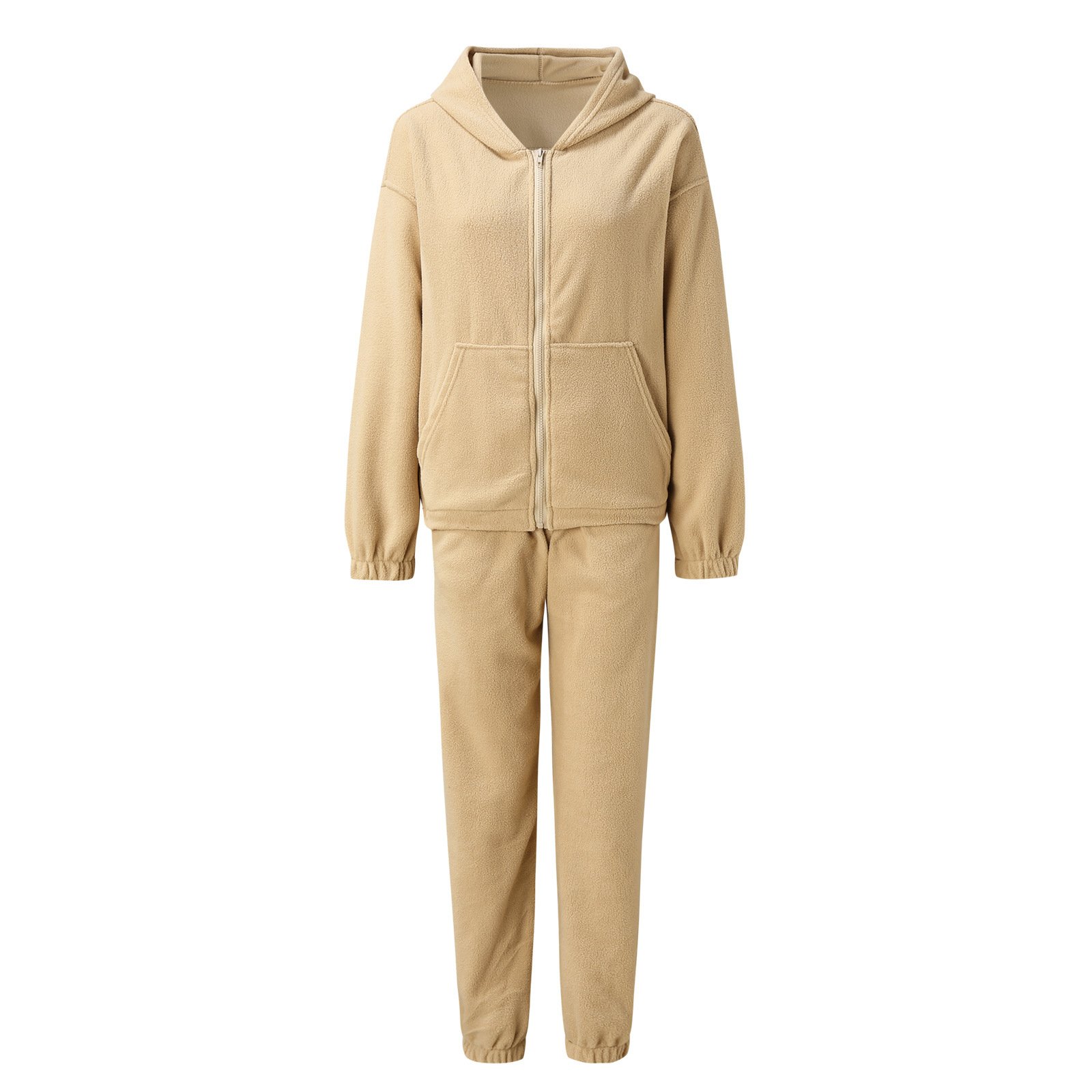 Imprescindible para personas con estilo relajado Este conjunto deportivo de dos piezas presenta un ajuste relajado y cómodo, que combina una chaqueta con capucha y cremallera con pantalones tipo jogger para un look cómodo y elegante, creando fácilmente un estilo urbano.